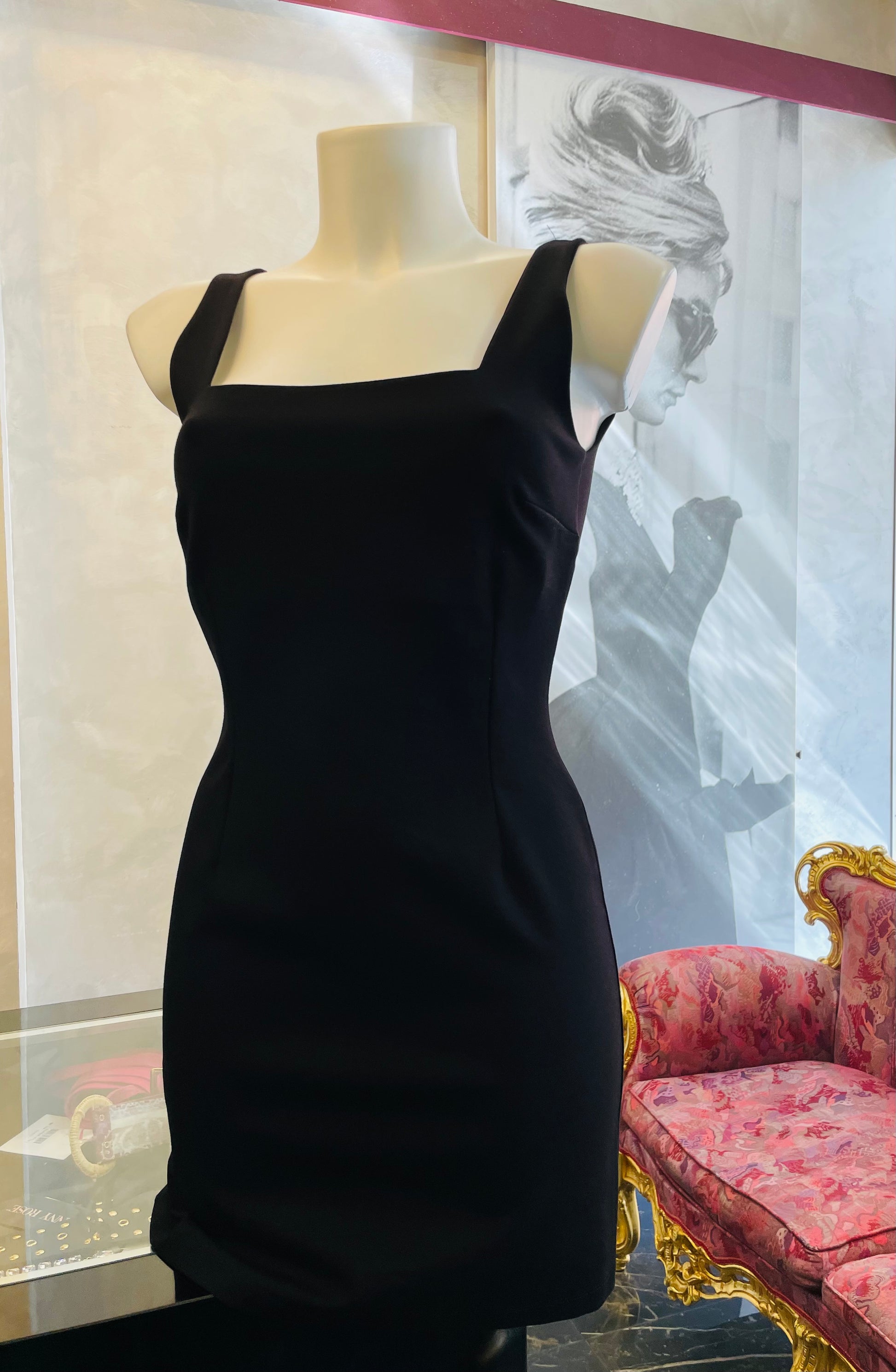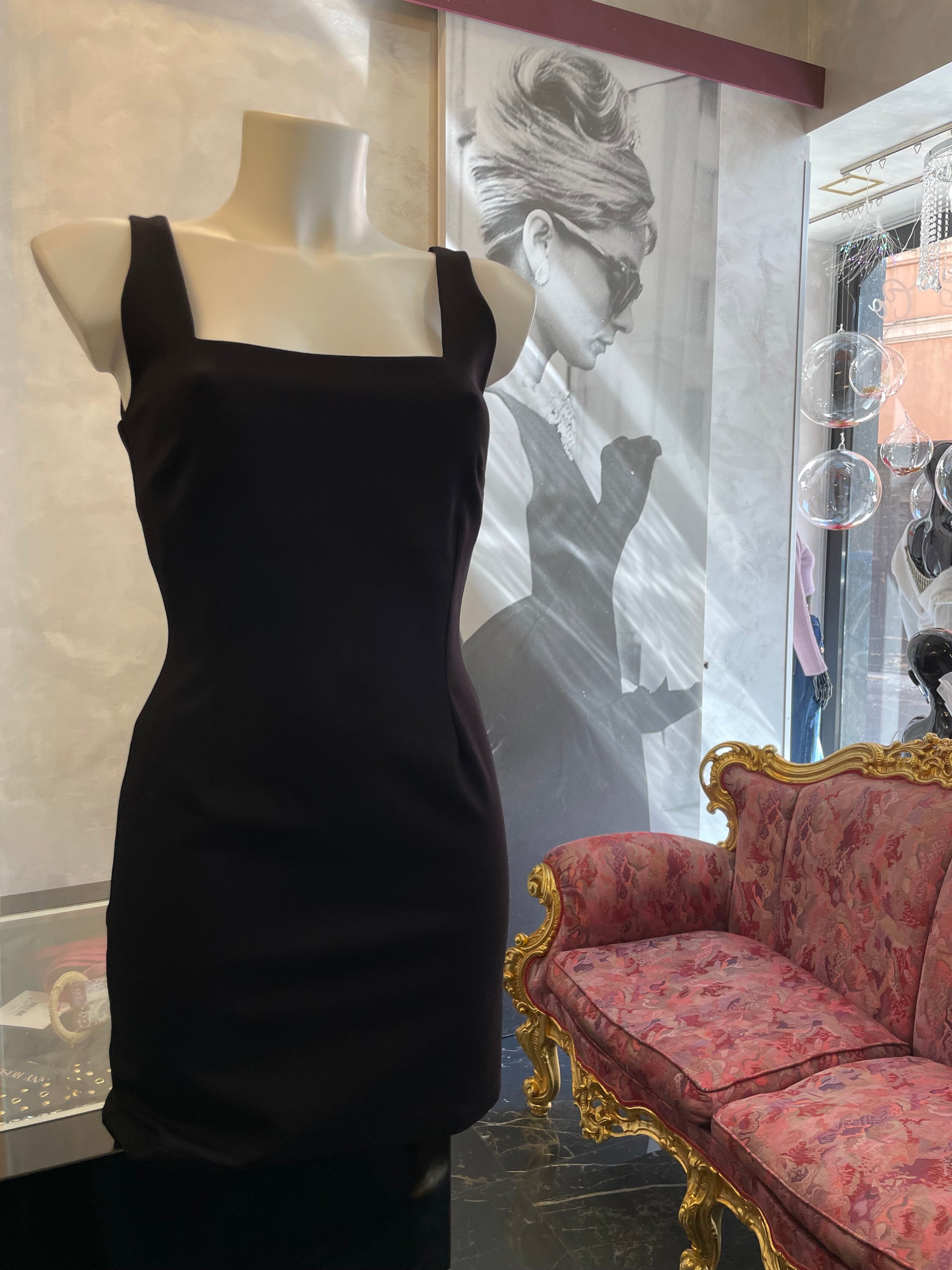 Abito a tubino corto in tessuto elasticizzato con spallina larga e zip sul retro.