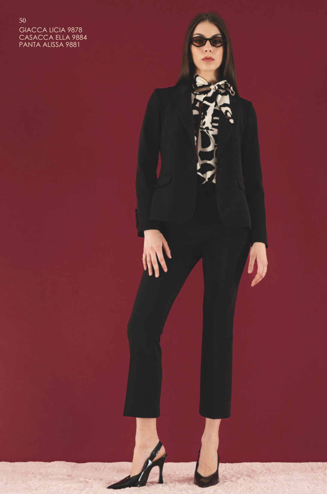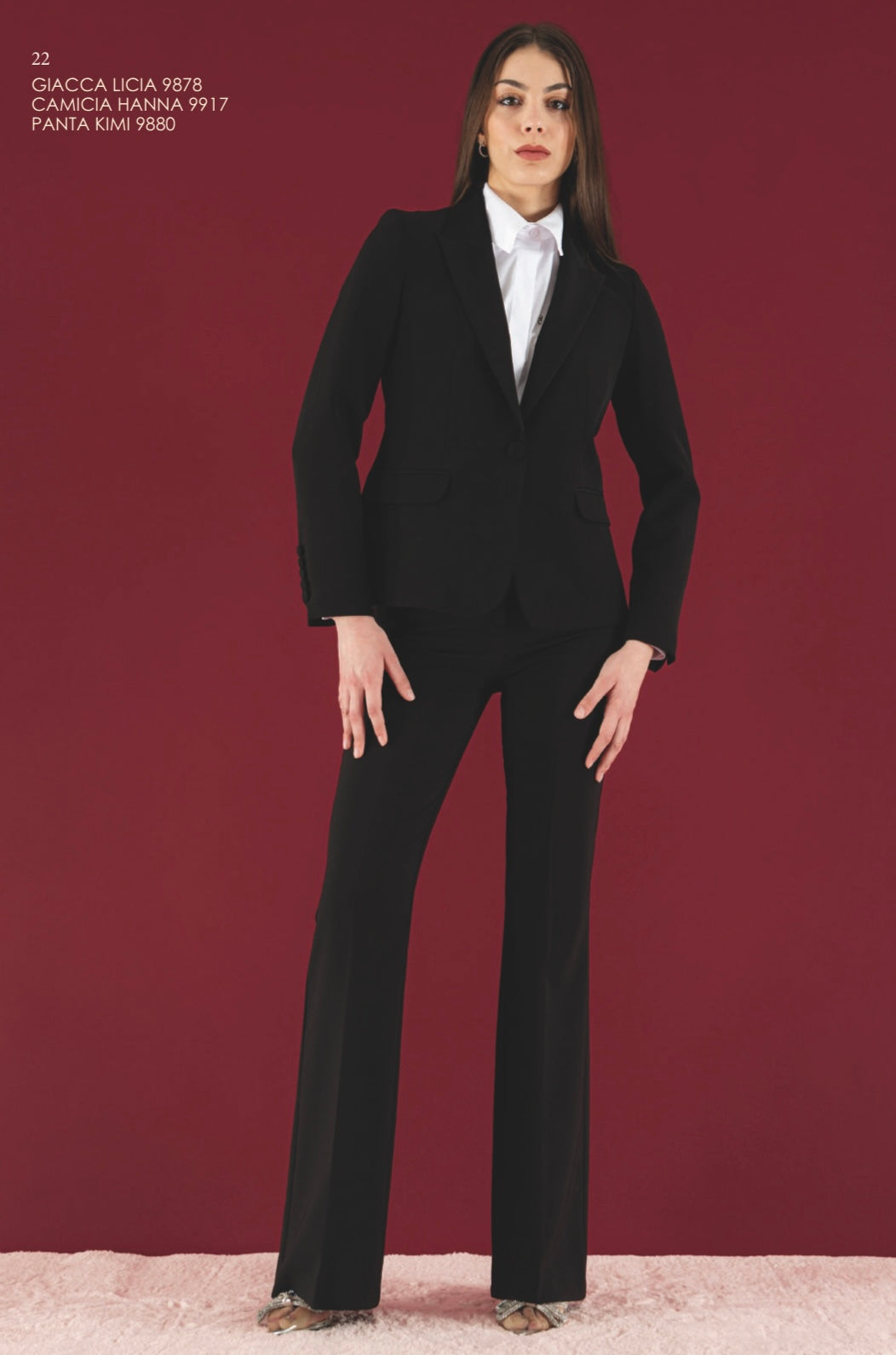 Giacca avvitata ben strutturata monopetto con taschine, abbinata al suo pantalone KIMI compongono un tailleur perfetto per ogni occasione. foderata internamente.