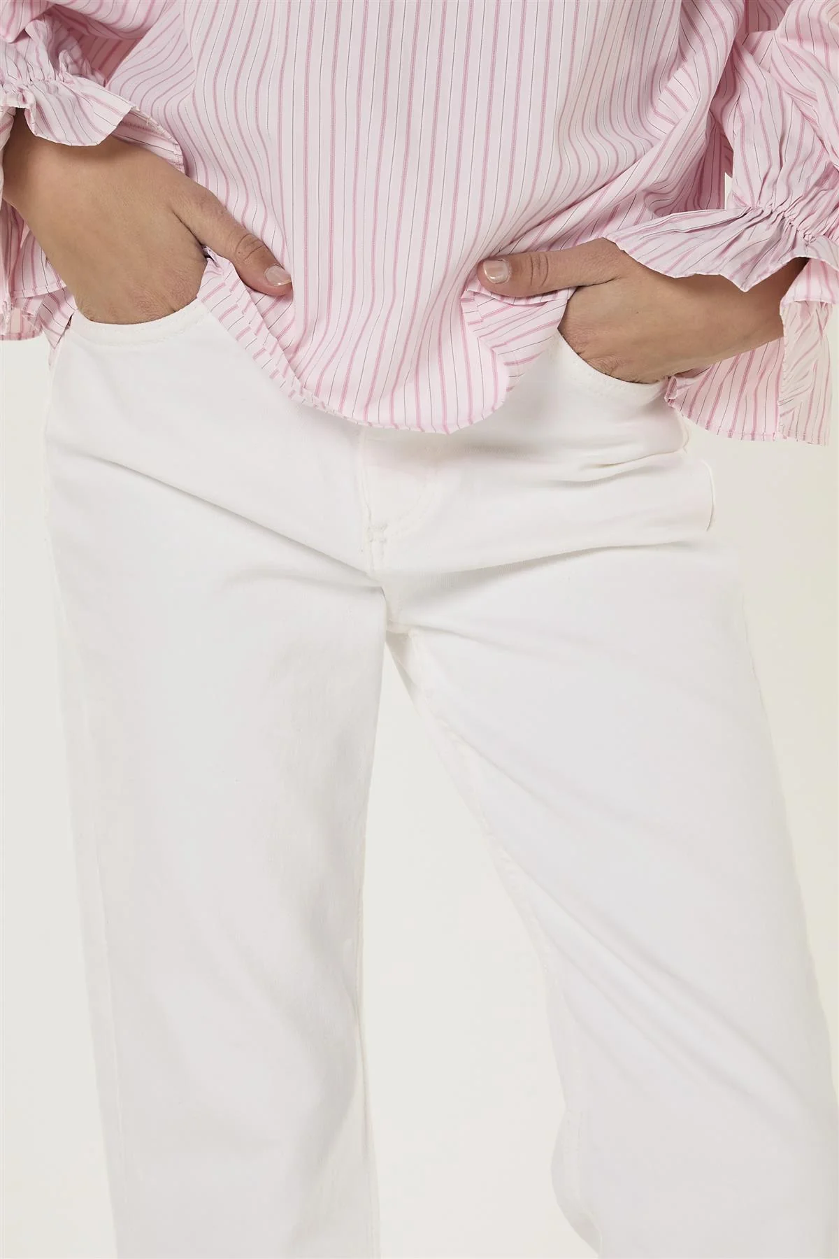 Eleganti jeans svasati cropped da donna bianchi. Dona un tocco fresco e moderno al tuo guardaroba con questi jeans svasati cropped bianchi, pensati per unire stile e praticità in un unico capo versatile. La silhouette cropped svasata aggiunge movimento e un tocco sbarazzino, creando una forma che valorizza la figura e si abbina a diversi top e calzature.