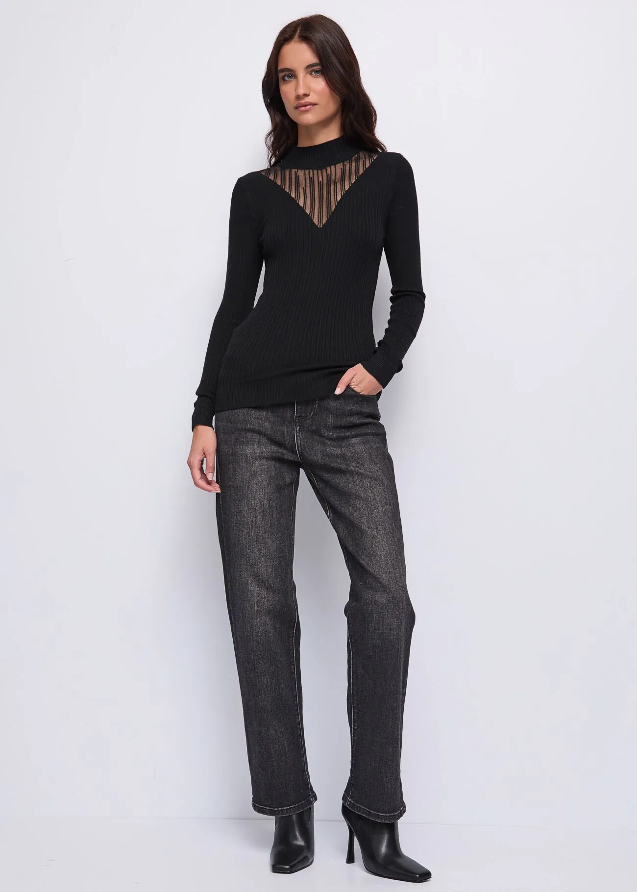 - Motivo a V con Inserto in tulle sul davanti