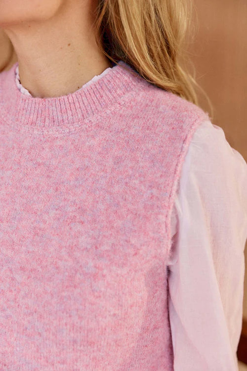Il maglione a gilet senza maniche in maglia, presenta un taglio minimalista impreziosito da finiture accurate.