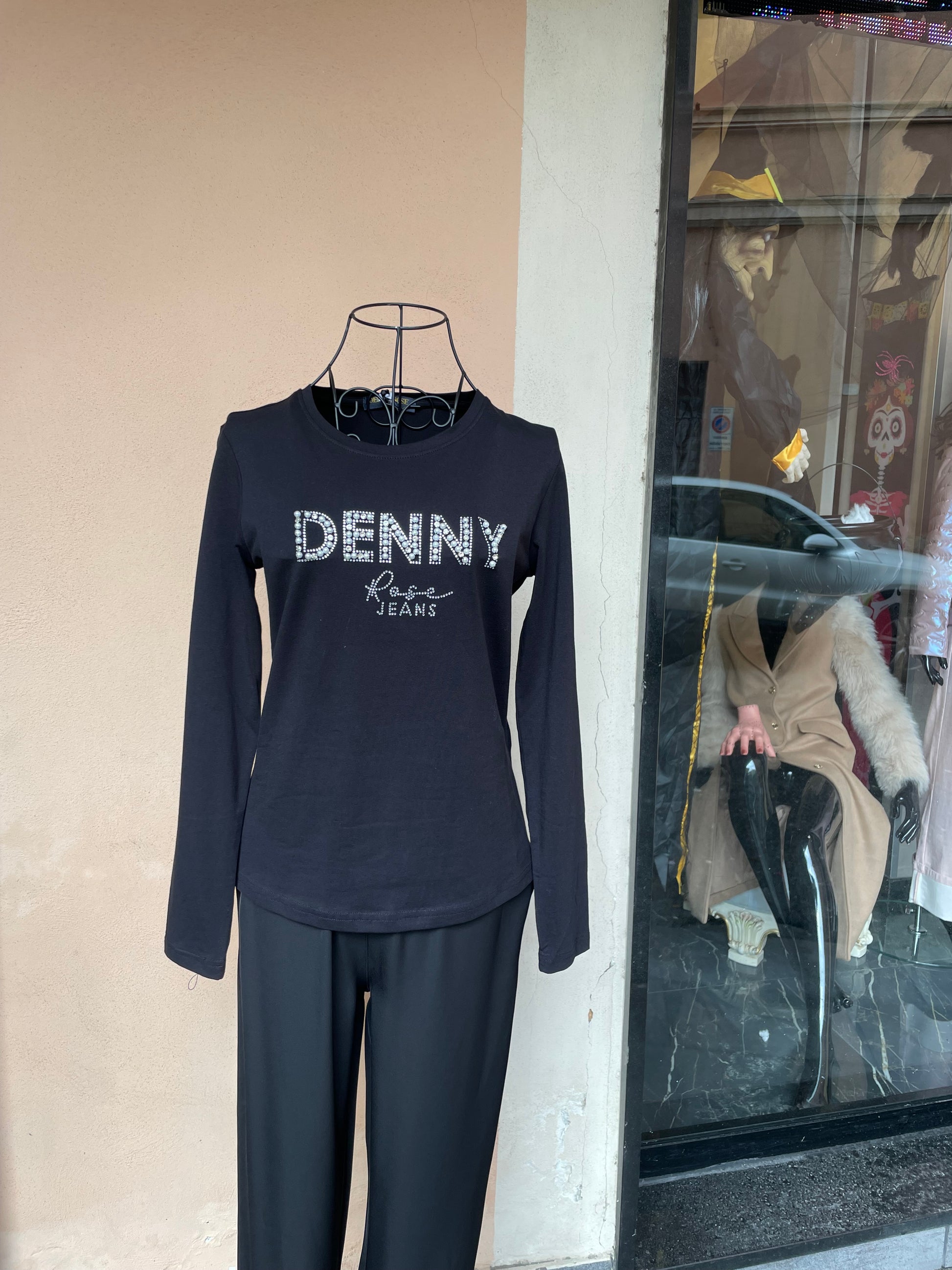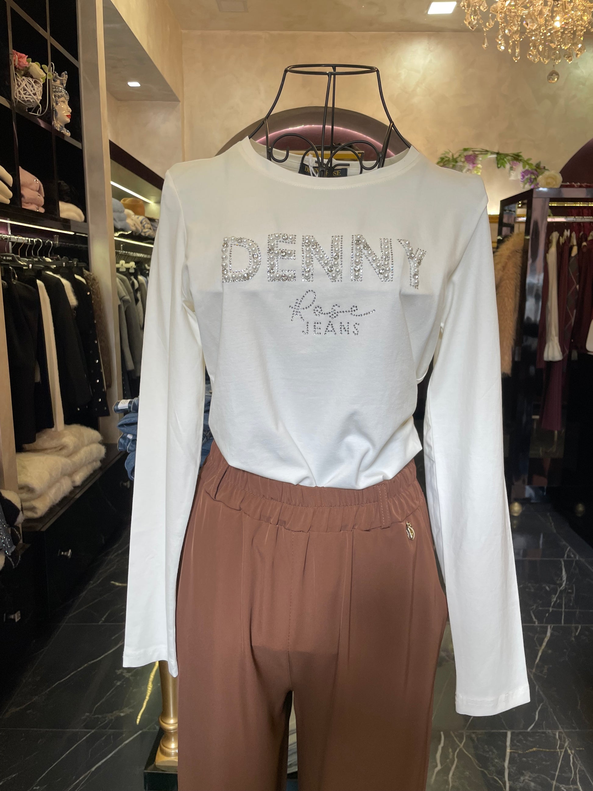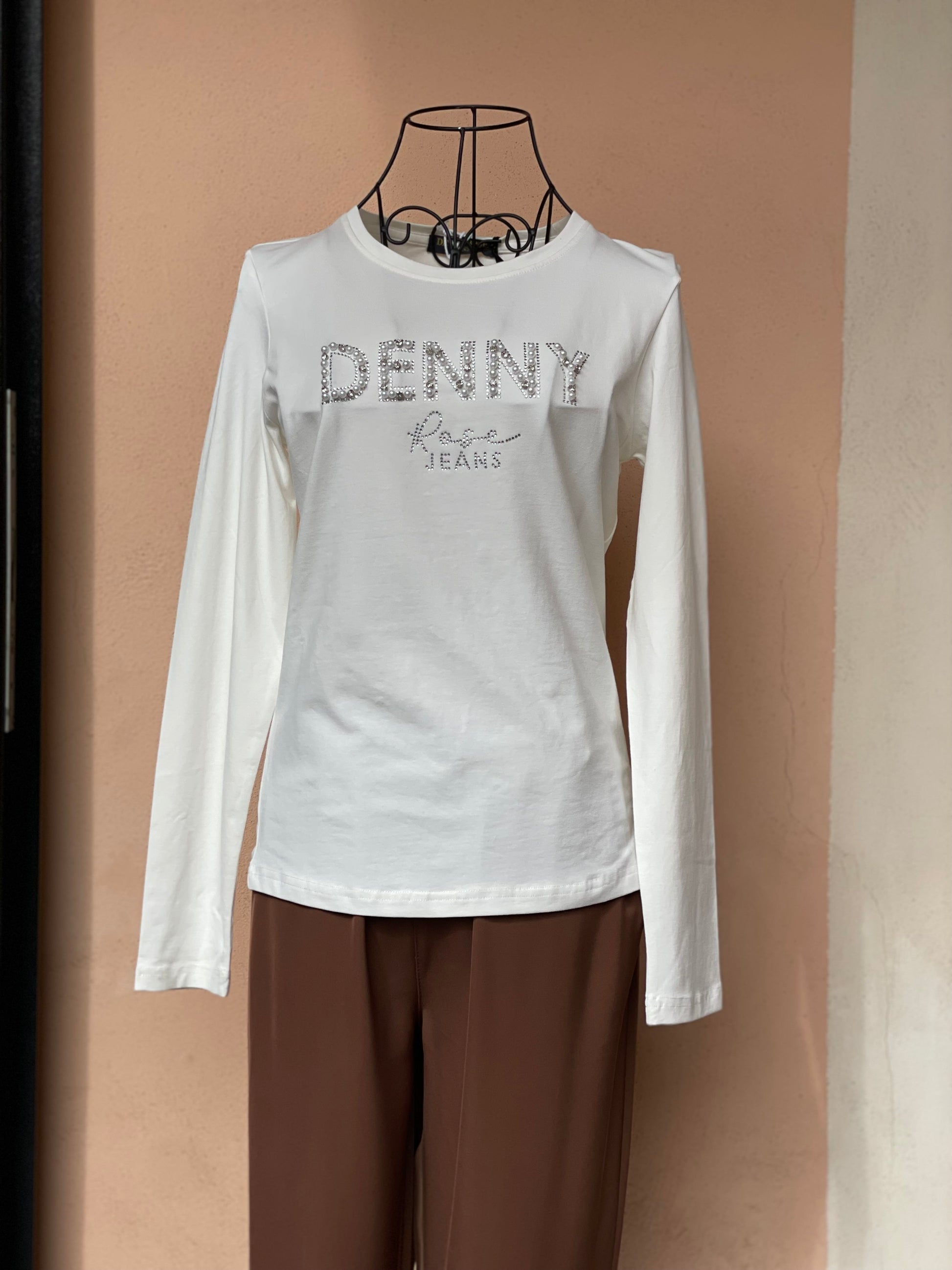 T-shirt manica lunga con scritta di perle e pietre disponibile bianca e nera.