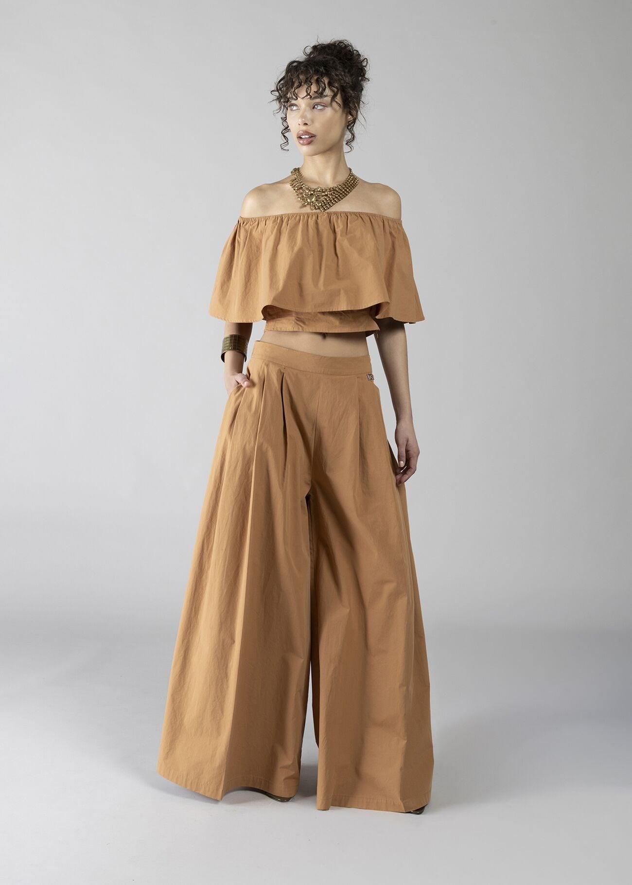 TOP CROP CON BALZA E SCOLLO ELASTICIZZATO.